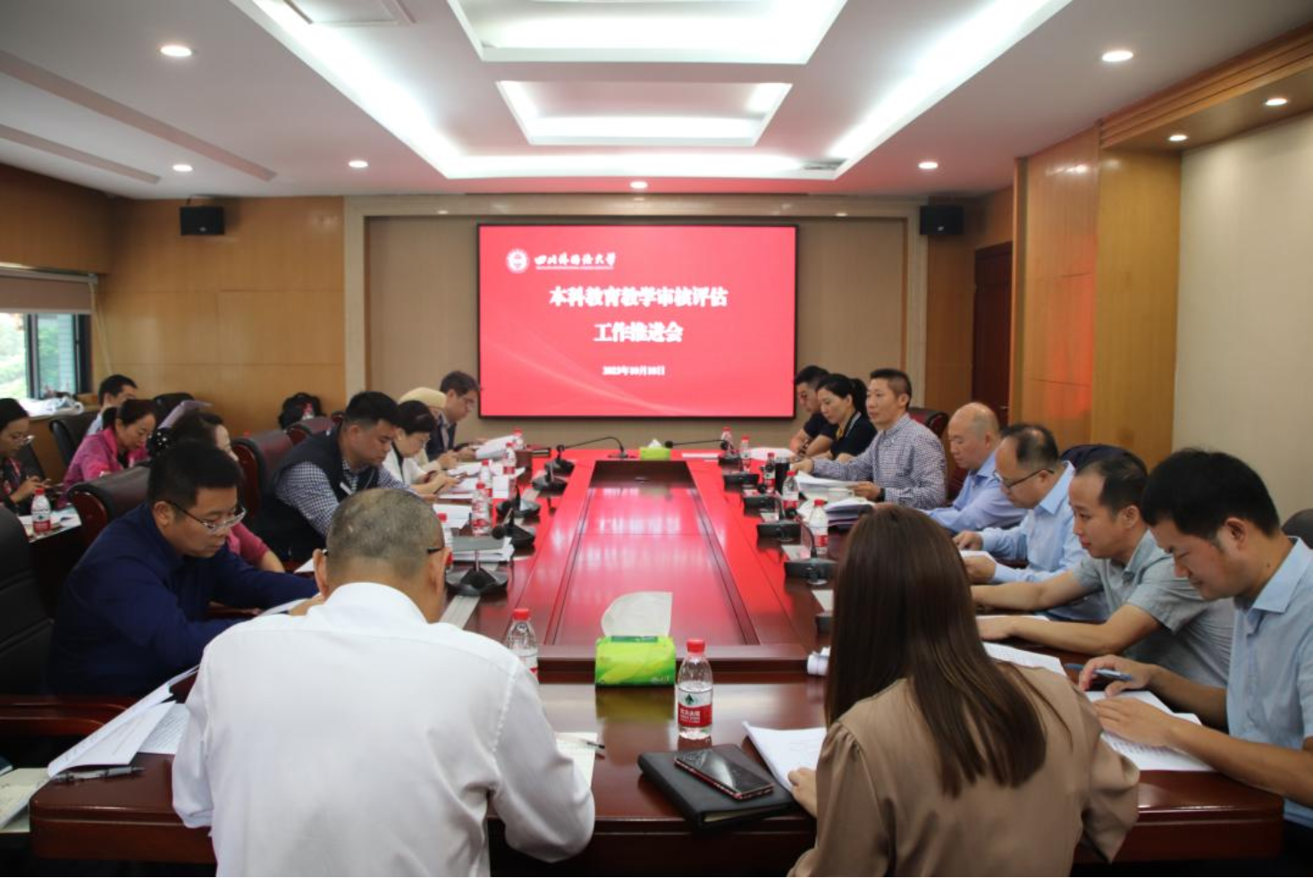 工作交流环节,各工作组主要负责人就审核评估工作方案任务分解、组间协调等方面展开深入交流与讨论。